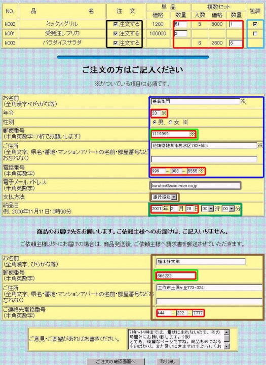 ●:お届け先を指定する場合は 「代金引換」を選択できません。 ※指定しない場合は全て空にしてください。