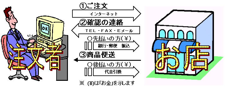 Bお店側がお客様に、ご注文の商品を便送します。